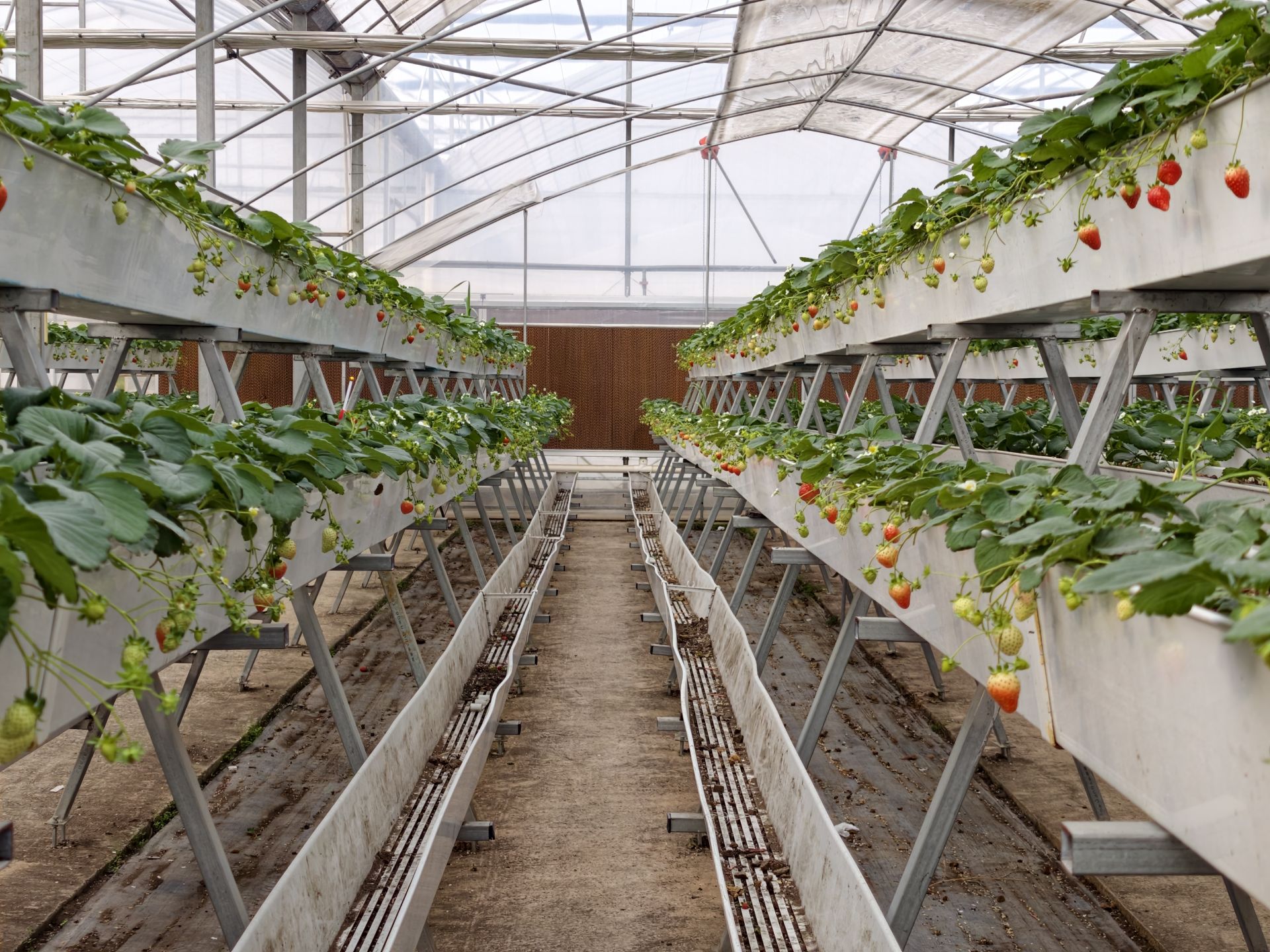 “傳統地栽草莓容易遇到連作障礙和土傳病害等問題,而我們采用的空中栽培模式,以基質代替土壤,從根本上切斷了土傳病蟲害的傳播途徑?!奔夹g負責人胡文鋒輕輕托起一株草莓介紹道,這些草莓的根系生長在特制栽培槽中,通過水肥一體化系統精準供給養分,確保每一株草莓都能獲得均衡的營養。