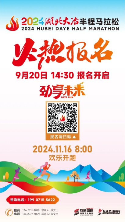 9月20日下午,大冶市舉行2024湖北大冶半程馬拉松賽事新聞發布會,宣布2024湖北大冶半程馬拉松賽將于2024年11月16日上午8:00從大冶市會展中心激情開跑。