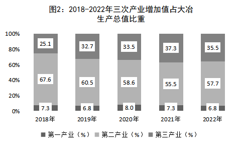 全年全市(全域口徑)實現地區生產總值860.79億元,比上年增長6.5%。其中:第一產業增加值58.48億元,增長2.9%;第二產業增加值496.49億元,增長9.8%;第三產業增加值305.82億元,增長2.7%。第一產業增加值占全市地區生產總值的比重為6.8%,第二產業增加值比重57.7%,第三產業增加值比重35.5%。