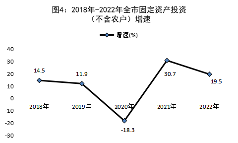 全年全市(全域口徑)固定資產投資(不含農戶)比上年增長19.5%。