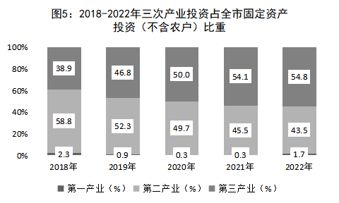 在全市固定資產投資(不含農戶)中,第一產業投資額比上年增長481.2%,占全市固定資產投資(不含農戶)比重為1.7%;第二產業增長11.4%,占比43.5%;第三產業增長18.1%,占比54.8%。