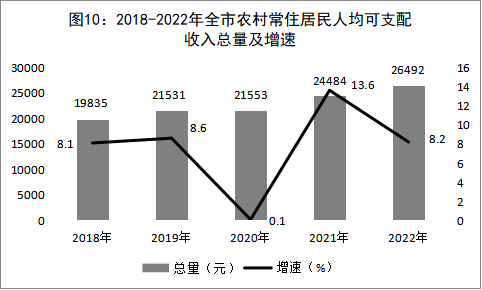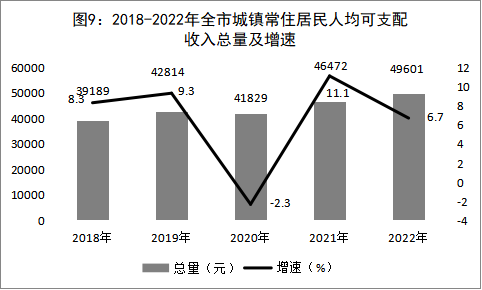 城鄉居民收入穩定增長。全年全市城鎮常住居民人均可支配收入49601元,比上年增長6.7%;農村常住居民人均可支配收入26492元,比上年增長8.2%。