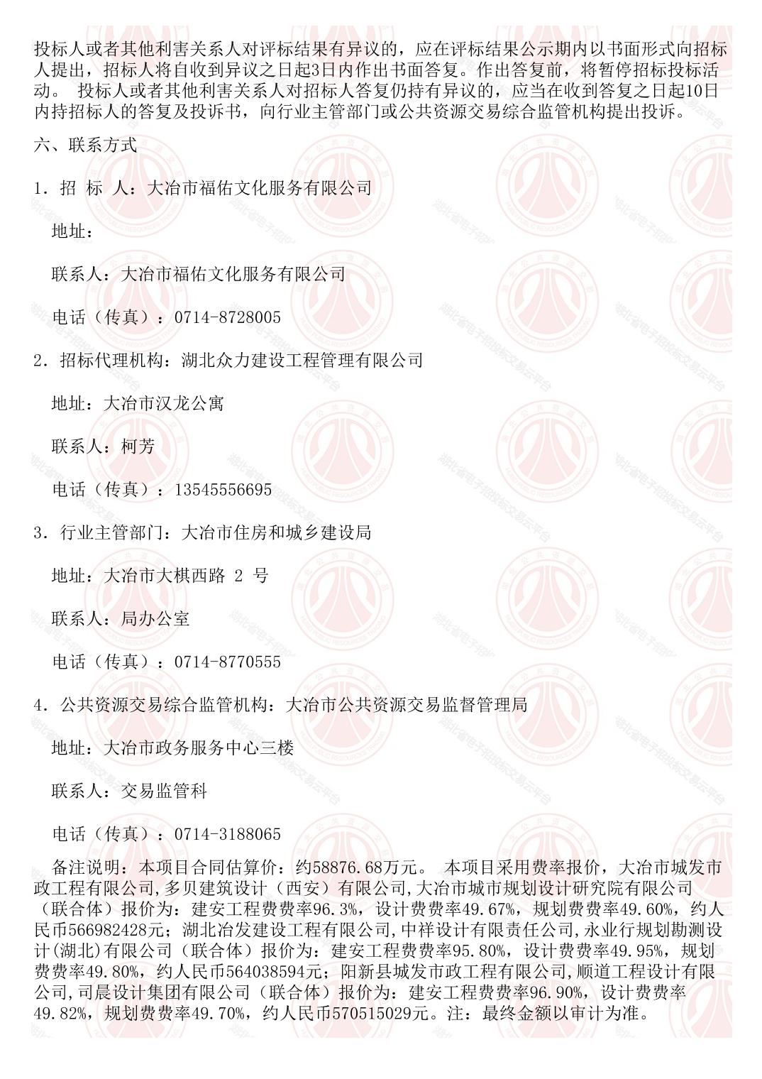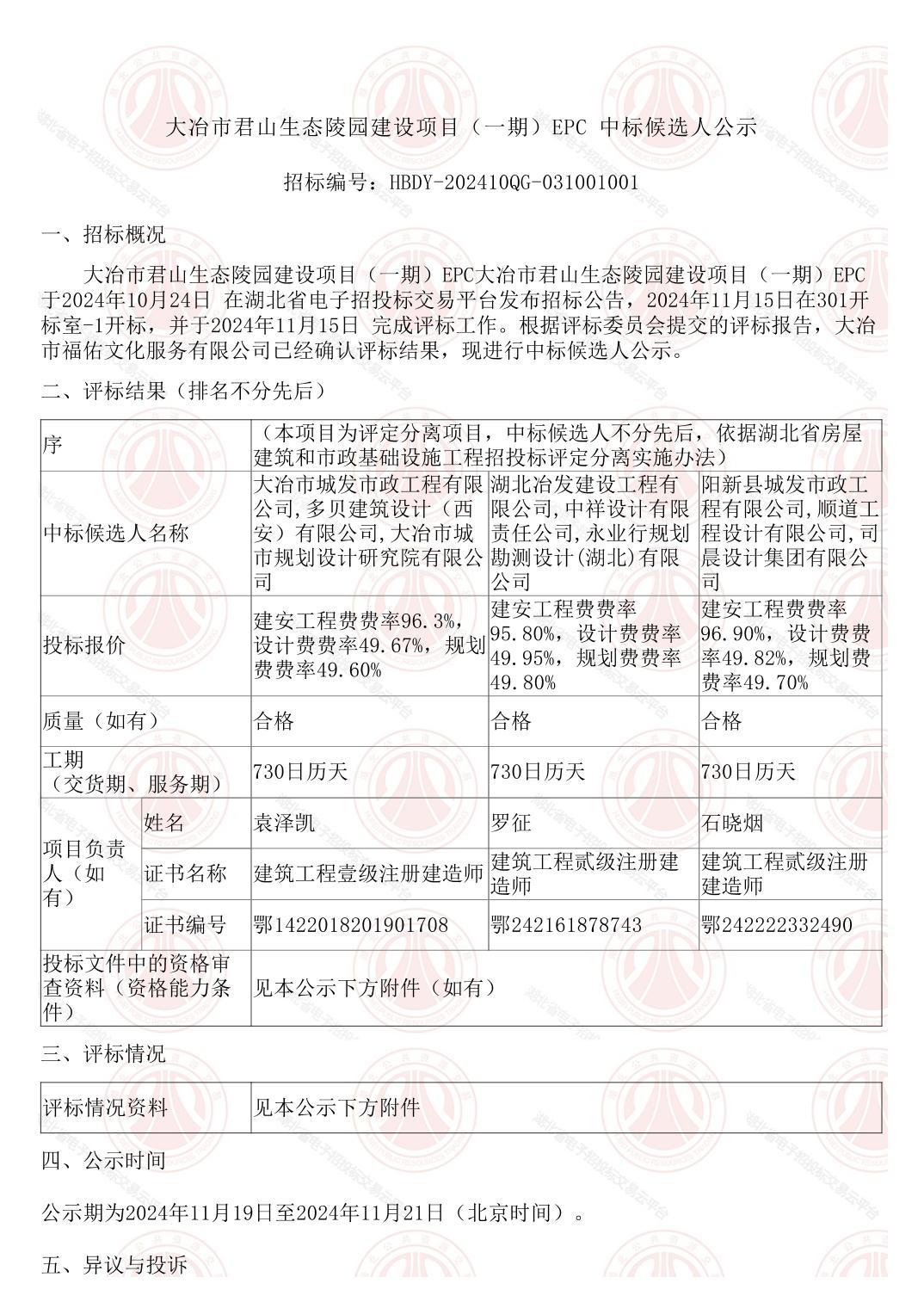 大冶市君山生態陵園建設項目(一期)評標結果公示