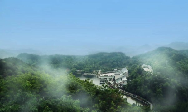 景區內峰巒起伏,風光秀麗,植被豐饒,氣候宜人,盛夏最高氣溫32攝氏度,山上山下溫差3-6℃,植被良好,林木品種繁多。現有森林面積16000畝,其中天然林11000畝,人工林5000畝,松樹林2000畝,杉木林1500畝,竹林1000畝,果樹林300畝,茶葉林200畝。