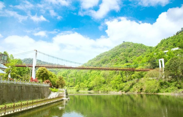 ● 吊橋吊橋又稱百步許愿橋,是一座跨湖懸索天橋,連接兩個山體,從橋上觀賞我們梅紅風景區的無限風光,也是攝影和散步留戀的絕佳場所。