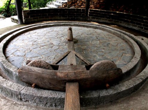 現有石碾一處,還有石碓、古磨、石滾。可恢復完整農家古作坊系列