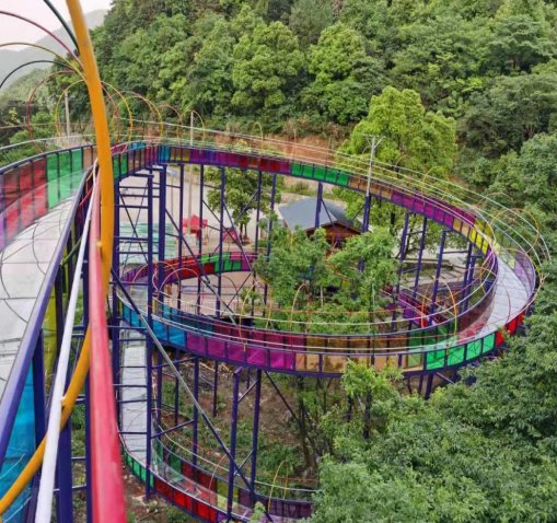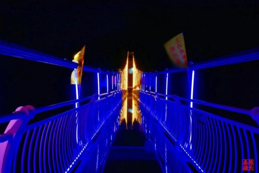 玻璃橋長328米,寬2.6米,全透明玻璃鋪設,橋面與地面最大垂直落差125米,是湖北區域目前長、寬、高均列第一的高空7D云海玻璃吊橋,也是大冶市鄉村旅游目前最獨特的風景觀賞橋。