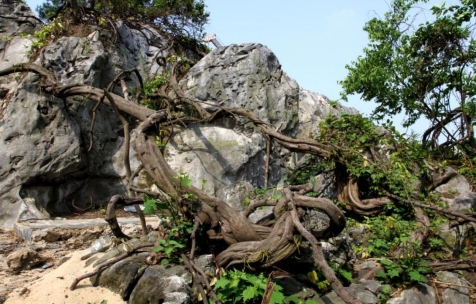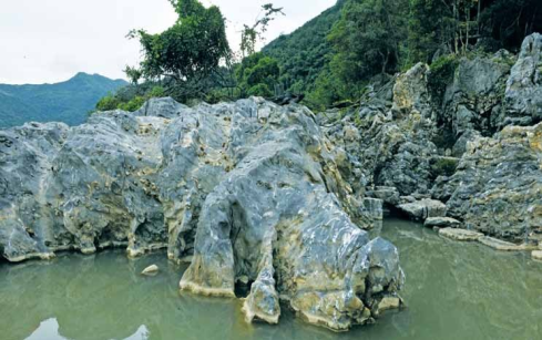 該園面積百余畝。生長著數條藤齡兩百年以上的牛騰(俗名),像神龍凌空出世,飛躍起舞。遠古時期,此處為海洋湖泊,大約三億年前,由于地殼運動,此處海底隆起成為山峰和石林,滿山石灰巖體;像頭頭雄獅,或仰天長嘯,或狂奔山野,或對坐戲耍;或悠閑漫步,形象千姿百態,蔚為壯觀。