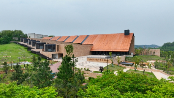 銅綠山古銅礦遺址新博物館是公園的重要展示物。新館位于銅綠山Ⅶ號礦體北坡上,與老館連為一體,相互交融,珠聯(lián)璧合。新館設(shè)計采用大地景觀風(fēng)格,紅銅斜面屋頂,工棚式博物館的主體,內(nèi)部井巷建筑空間,逐層向南融入到礦山形態(tài)之中,凸顯了中國礦冶文化的元素。新館基本陳列“青銅源·銅綠山”,圍繞“銅綠山之魂脈”而展開,共分為序廳、銅山有寶、找礦有方、采礦有道、煉銅有術(shù)、青銅有源,連接春秋采礦和宋代焙燒爐考古發(fā)掘現(xiàn)場展廳,不僅記錄了銅綠山的考古發(fā)現(xiàn)、發(fā)掘、保護、利用的全過程和古人找礦、采礦、冶煉方面的聰明才智,更是突出展示了銅綠山古銅礦遺址在“金道錫行”中的重要地位,以及為中國青銅文明所作出的重大貢獻,彰顯了大冶是一座名副其實的世界礦冶文化名城,華夏青銅文明圣地。