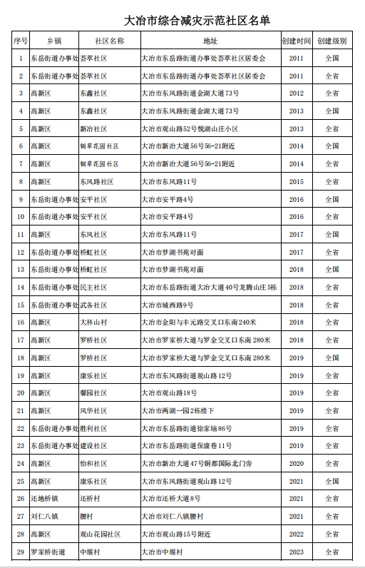 2025年度大冶市綜合減災示范社區名單