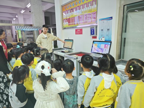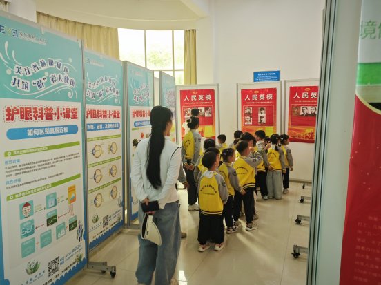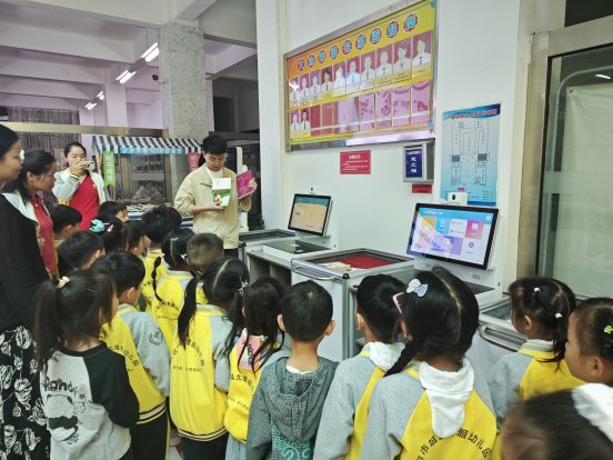 活動以繪本《三只小豬》的講解開場,通過互動提問引導幼兒思考“勇敢面對困難”的品質,潛移默化傳遞愛國情懷與敬業精神,激發幼兒對責任與擔當的初步認知。接著,圖書館志愿者現場演示自助借閱流程,指導幼兒實踐操作,強調愛護書籍、遵守公共規則的重要性,從小培養法治觀念與文明行為習慣,踐行“自由、平等、法治”理念。隨后,通過參觀道德楷模事跡展,結合志愿者生動講解,幼兒從榜樣故事中學習誠實守信、助人為樂的美德,深化對社會主義核心價值觀中“誠信、友善”內涵的理解。最后,護眼知識展以圖文形式普及科學用眼方法,引導幼兒關注自身健康,養成良好生活習慣,體現“和諧、文明”的社會發展目標。