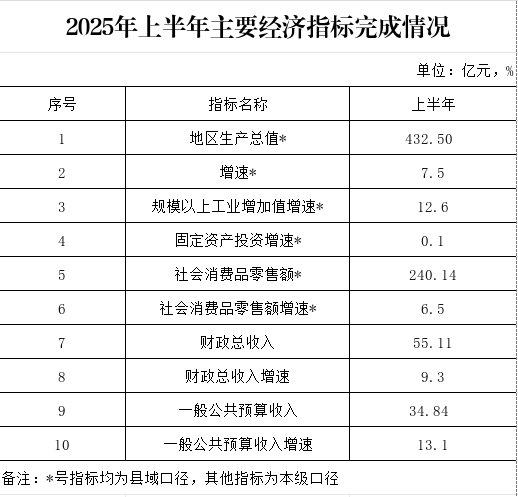標  題:2025年上半年主要經(jīng)濟指標完成情況