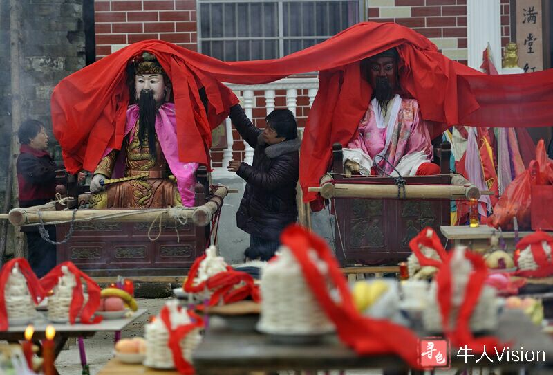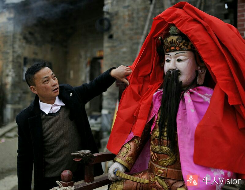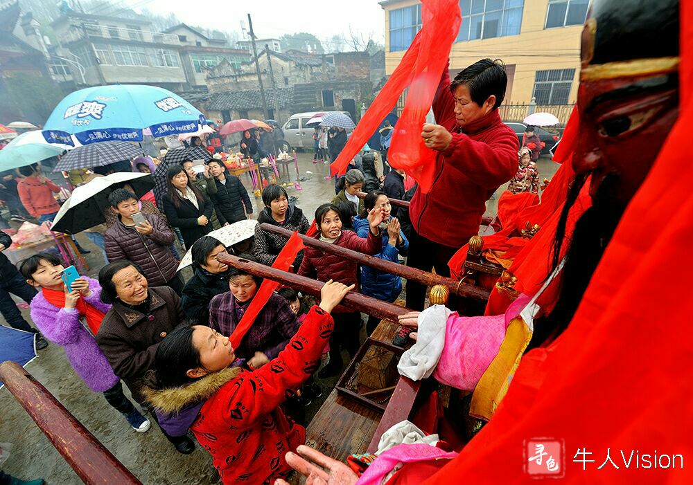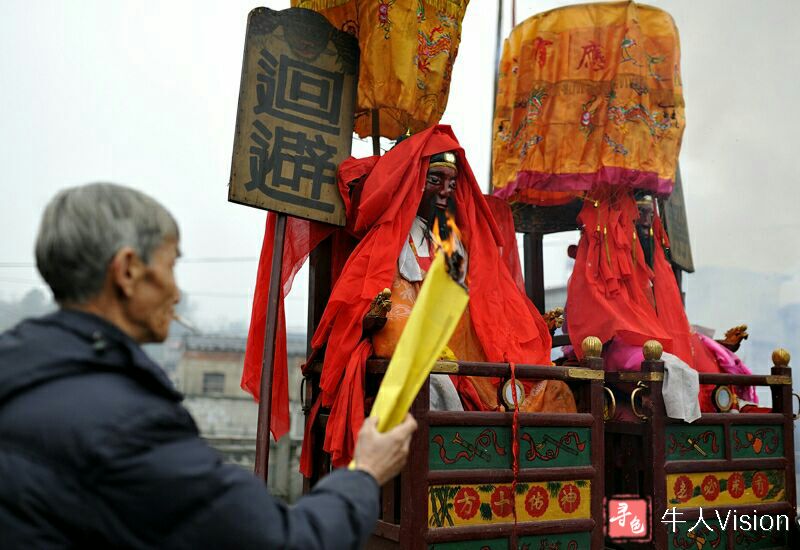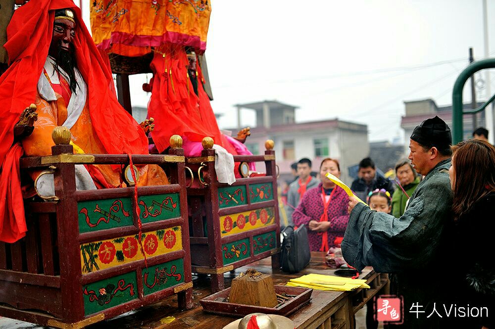 據說,“土主會”主要是供奉和祭祀當地一個抵御外擄、扶貧濟困的英雄——土主老爺。每年農歷二月十八,山民們把兩尊紅臉紅袍的土主菩薩抬下山——土主下天,繞果城里所有村莊游一周,三月初三送上山——土主升天,歷時半個月。當地有一首民謠說:“十八鄭十八,十九盛天久,二十到殷祖,二十一,水口歇……”由此村到彼村,村村都要舉行祭典。