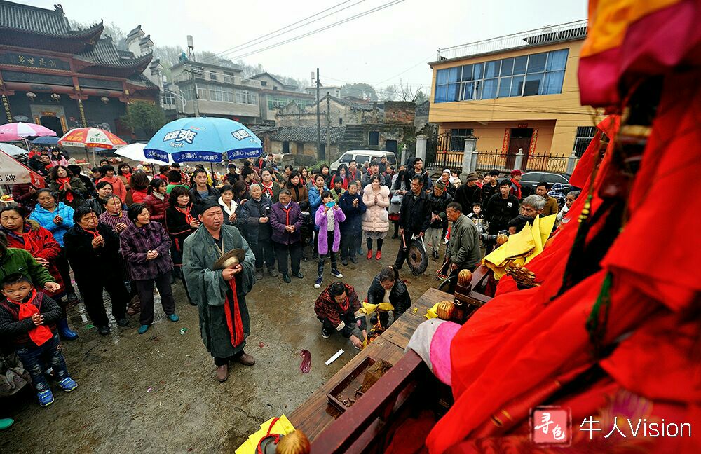 土主老爺游村日程有規定的順序。民諺中說:“二月十七黃清到杜鐵,十八鄭十八,十九盛宣九,二十到殷祖,二十一徐什一,二十二徐勝張海一筆直,二十三畈中間,二十四秦華泗,二十五歇鑼鼓,二十六胡英淑,二十七游隔壁,二十八三四甲,二十九到大董,三十日吳安二,三月初一衛冉,三月初二腰村鋪,三月初三打石洪”。從二月十七開始,到三月初三結束,紅臉紅袍頭戴官帽的土主菩薩,被八個身強力壯的光鮮后生抬舉著,在鑼鼓喧天、銃炮齊鳴的轟天響應中,在摩肩接踵、人山人海的簇擁下,走村串戶,廣施平安。