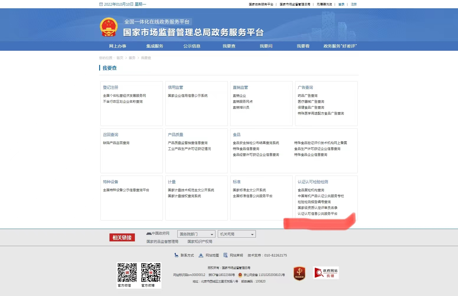 請前往“國家市場監(jiān)督管理總局”(https://www.samr.gov.cn/)官方網(wǎng)站進行查詢。???方式一:進入主頁,點擊【服務(wù)】欄→【我要查】→【認證認可檢驗檢測】→【認證認可信息公共服務(wù)平臺】進行電動自行車3C認證查詢。???方式二:直接輸入網(wǎng)址“cx.cnca.cn/CertECloud/index/index/page?currentPosition=”進入【認證認可信息公共服務(wù)平臺】進行電動自行車3C認證查詢。